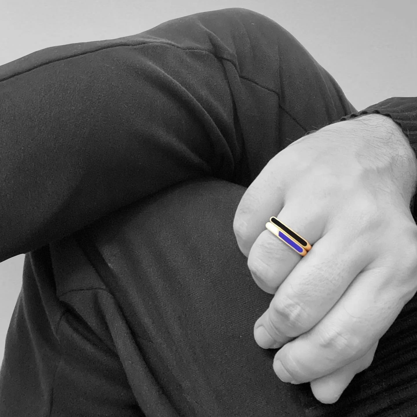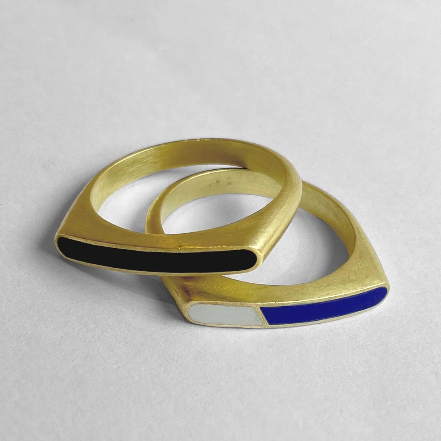 ‘Stripe’ rings and studs in18k Gold and sterling silver vitreous Enamel